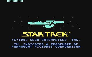 Comme toute bonne licence juteuse et susceptible d'engendrer de meilleures ventes, "Star Trek" a eu aussi son lot d' adaptation qui parfois n'avait en rapport avec la série que le nom. On trouve des jeux presque sur toute les machines : tandy, apple, spectrum, amstrad, atari, amiga, pc... et d'autres. L'année de la diffusion en France de la série donc en 1983, un petit jeu sort sous C64. Ce jeu est en fait l'adaptation de la version arcade de SEGA. Cette dernière étant un des premiers jeux en fil de fer, juste avant la sortie l'année suivante de la référence en 3D-fil de fer : Star Wars.