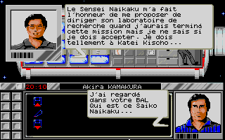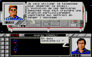Tout commence par l'opération d'arrimage de la navette spatiale à la station PEGASUS, manoeuvre délicate mais qui peut se faire manuellement sans trop de difficulté et sans avoir recours au mode automatique qui vous fera d'ailleurs perdre une heure sur votre temps d'enquête et aura une incidence directe sur celle-ci, arriver plus tôt à la station vous permettra de sauver un membre de l'équipage. A l'ouverture du sas, vous êtes accueilli par le commandant de bord, Philippe AMIOT, seul à avoir été informé des vraies raisons de votre venu, officiellement pour raisons administrative, discrétion recommandée.