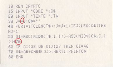 Peut-être vous demandez-vous pourquoi un décalage de +5 pour trouver le bon code, cela provient sans doute de l'erreur dans le listing de programme (70 au lieu de 75) en question 7