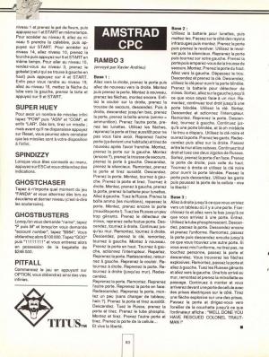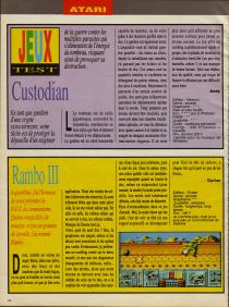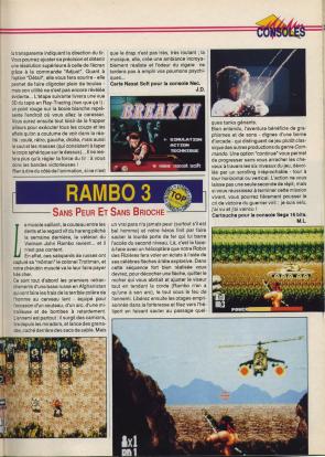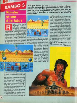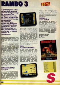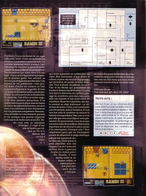 Rambo 3 est donc un bon jeu qui laissera certainement plus de souvenir à ceux qui l'ont connu sur Amstrad que sur Amiga. Le premier niveau demande une bonne dose de réflexion et ce n'est pas déplaisant. Malheureusement la faible intelligence des ennemis, l'absence de scrlling entre les écrans est une honte pour un 16 bits. Fan de Sly, si vous recherchez la castagne et à venger votre cher colonnel, passez votre chemin si par contre un peu de tir, beaucoup de stratégie et que vous aimez la magie des camps russes en Afghanistan la nuit... foncez.