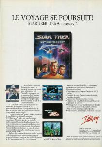 S'il y a bien une série qui méritait une adaptation micro digne de ce nom c'est bien Star Trek; La série n'est en effet que matière à imagination, chaque épisode est un tout qui peut suivre des chemins complètement différents. Pourtant ce n'est pas la première adaptation de la série t.v. en jeu vidéo et en faisant une petite recherche sur le Net, vous y trouverez des jeux sur des plateformes aussi variées allant du Tandy en passant par le C64, le Spectrum et même l' Arcade; Mais toutes ces versions étaient assez éloignées du concept original on ne retrouvait guère l'ambiance et l'aventure propre à la série. "Star trek - 25 th anniversary" est donc en ce sens une excellente transposition de la série originale imaginée par Gene Roddenberry. Interplay réussit à nous faire revivre dans ce jeu de nouvelles aventures avec l'équipage de l' U.S.S Enterprise et sa mission au travers l'infiniment grand. D' abord sorti sur PC disquette en 1992, la version A1200 ne sortira que deux ans plus tard dans une très mauvaise conjoncture pour Commodore France qui déposait le bilan. Huit disquettes en français installables uniquement sur disque dur, ce qui a freiné évidemment les ventes du jeu sachant le prix prohibitif de ce matériel sur Amiga à cette époque.