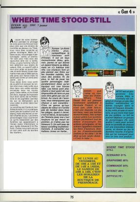 Si vous avez connu les heures glorieuses du Spectrum, vous vous souvenez certainement de "The Great Escape" ou "Where Time Stood Still", deux jeux en 3D-isométrique qui ont eu un énorme succès sur cette machine. Denton Design réactualise son hit sur Atari ST avec en prime de meilleurs graphismes. Une ambiance un peu BD, des monstres préhistoriques et des cannibales, un univers très série B des années 50...bref comme on les aime.