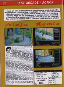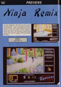 Ninja Remix est arrivé bien tardivement surtout si on le compare à la version bêta faite par l'équipe d' Eclipse sur Atari ST en 1988, graphiquement c'est identique avec quelques améliorations sur la maniabilité et surtout l'ajout des superbes musiques de Jochen Hippel. On peut se dire que l' Amiga aurait pu mieux faire mieux en proposant par exemple des graphismes en 32 couleurs, un scrolling, des bruitages et pourquoi pas un niveau supplémentaire et une fin digne du 16 bits mais non ! tant pis il faudra se contenter du minimum... on aime ou on n'aime pas ! Le gros problème est que le meilleur jeu C64 ne donne pas le meilleur jeu 16 bits surtout quand il s'agit d'une simple conversion. Le charme du jeu original y est toujours, je pense que ceux qui ont connu la version C64 gagne à connaître cette version assez jolie graphiquement, un peu simple au niveau des combat mais surtout bien rythmé musicalement.