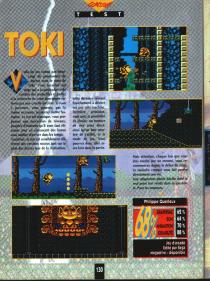 Toki est un jeu réputé difficile, très difficile, et il l'est. Un vrai "die and retry" assez punitif. On aime ou on déteste, un peu à la Rick Dangerous, difficile pas par son gameplay même si le gorille traine un peu la patte et que rester sur les plateformes mouvantes est un peu laborieux, ni à cause de ces ennemis dont la plupart des patterns sont scriptés, l'IA n'est en fait pas très évolué, mais bien par le fait que la mort a une double peine, non seulement parce qu'elle vous fait perdre une vie mais aussi vos super armes. Dès lors certains passage sont quasi impossible à franchir sans ses armes. Les sauts se font aussi au pixel près comme les collisions, le placement vicieux de certains ennemis ou obstacles vous obligeant à connaitre parfaitement le parcours et le timing des ennemis au risque de recommencer depuis un checkpoint. Le dernier niveau étant le plus difficile à cause des passages sur le charriot et on a le droit à des doubles Bellezador qui sont en plus deux fois plus résistants, quand au sorcier, accrochez-vous et pour finir 5 continues uniquement sur ce niveau ! Bref c'est du costaud.