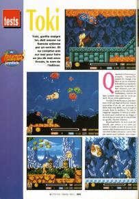 Dans Toki on dirige un singe avec une grosse tête, qui ressemble plus à un gorille, et qui a quand même une particularité intéressante, il non seulement sauter sur les ennemis pour les éliminier mais aussi il peut tirer des boules de feu ! oui des boules de feu ! Donc le sorcier truc qui a transformé machin en singe en lui piquant sa copine au passage, il s'est dit "tiens et si je lui faisais cracher des boules de feu". C'est vrai pourquoi ne pas avoir donner à Toki une sarbacane, ca semble plus logique. Mais non ! il crache des boules de feu.