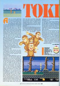 Certains classent Toki comme un platformer, pour ma part je le classerai plutôt dans les "Run and Gun" dans la lignée de "Ghouls'n Ghosts", mais en moins nerveux. En effet le côté plateforme n'est pas la composante principale du jeu, il n'est même carrément pas développé. Il faut aller tout droit sans se poser de question, contrairement à des jeux comme "Prince of Percia", "Turrican" ou "Blues Brothers". D'ailleurs pour revenir à Ghouls'n Ghosts, les deux jeux partagent d'autres similitudes qu'on verra plus tard. En tout cas Toki a eu un énorme succès en arcade même si on estime que la PCB Jamma originale n'a été produite qu'à environ 5600 exemplaires, le jeu ayant subit un piratage important et des versions bootleg ont rapidement fait leur apparition faisant chuter ses ventes.