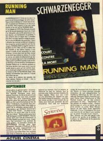 Malgré toutes ses cartes en main, "Running Man" ne rencontrera pas le succès escompté, 38 millions de Dollars de recettes pour un budget estimé à 27 millions hors coût marketing sachant que la même année un autre film de l'acteur "Predator" a rapporté presque 100 millions pour un budget de 15 millions. La déception est donc de mise et le film suivant "Double Détente" avec James Belushi ne fera pas mieux. Pourtant le film a eut une seconde chance grâce, comme beaucoup de film à cette époque, à l'essor des vidéos Clubs dans les années 80 et "Running Man" avait un grade culte dans les soirées pop-corn, pin-up et gros bras, sans prise de tête, pas trop loin d'un Van Damme ou d'un Chuck Norris mais pas trop près quand même.