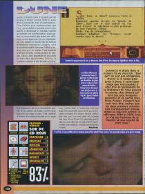 C'est cette dernière que nous nous attarderont, en effet la version PC-CD était à elle seule un formidable plaidoyer pour le passage au CD-Rom et à l'achat d'un Pentium i386 ou i486 pour les plus fortunés mais ils n'étaient pas nombreux à l'époque les personnes qui ont pu éffleuré cette version à cause des coûts prohibitifs de ces machines. Avec ces 256 couleurs, une introduction reprenant des séquences du film de David LYNCH, des animations assez impressionnantes en images de synthèse comme le survol de la planète en ornithoptère mais aussi le doublage de tous les personnages en anglais sous-titré français (assez dommage pour un jeu français) la version avait de quoi séduire. Une version console Mega CD verra même le jeu, mélange de graphismes Amiga avec les extra CD, hormis le fait que cette version posséde un vrai doublage français ! incroyable ! C'est sûr Cryo avait frappé fort faisant rentrer le petit studio des froggies dans l'histoire du jeu vidéo.