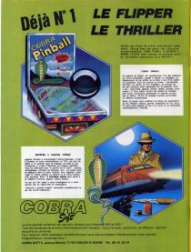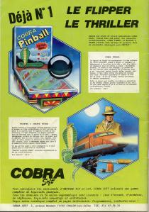 Si Meurtre à Grande Vitesse marque le premier grand succès de Cobra Soft, il est rapidement suivi d’un titre au concept radicalement différent mais au succès tout aussi retentissant : Cobra Pinball. Entièrement programmé en assembleur par Gilles Bertin, le jeu impressionne la presse par son réalisme bluffant. Il intègre presque tous les éléments d’un véritable flipper : extra-ball, loterie, couloirs de remontée et latéraux, bumpers, cibles et tourniquet. Certaines critiques n’hésitent pas à y voir la fin annoncée des flippers mécaniques.