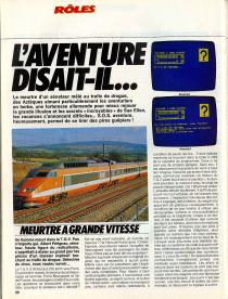 « Agatha Christie a immortalisé l'Orient-Express: C'est à nouveau un train extraordinaire le T.G.V qui sert de décor à ce nouveau type de logiciel : au-delà du jeu d'aventure, il s'agit d'élucider une énigme policière: »