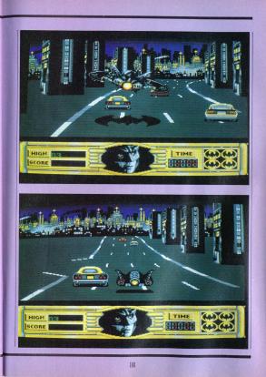Sur Amiga, Atari ST et PC, la voiture est donc en vue arrière, l'action est typique des jeux d'arcade de course/poursuite. L'une des innovations inspirée par le film est que pour tourner rapidement, aux intersections, vous devrez lancer un grappin au bon moment qui s'enroulera sur la base des réverbères faisant ainsi tourner la Batmobile à 90°et enchaine la portion de route suivant. Seulement trois essais par portion sont permis, au-delà un barrage de Police viendra mettre un terme à votre balade avec Vicki et vous faire perdre une vie. Tout cela nécessite un peu de pratique et un bon timing mais rien d'insurmontable.