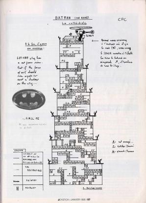 J'avais vu Knight Lore et j'étais déterminé à écrire un moteur similaire (ou meilleur) - c'est ce que j'ai fait. Bernie et moi avons essayé de trouver un héros que nous pourrions utiliser et dont les gens auraient entendu parler - je pense que c'est moi qui ai pensé à Batman puis nous avons demandé à Ocean s'ils pouvaient obtenir la licence. J'ai conçu l'ensemble du jeu sans aucune contribution de personne d'autre et avec le recul, mon seul regret était qu'il y avait une salle (la 9ème) avec un pont explosif que de nombreux joueurs n'ont jamais réussi à passer - cela n'aurait pas dû être si tôt dans le jeu...