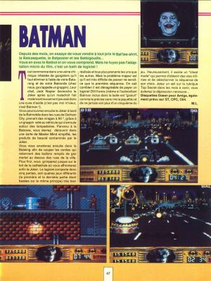 Le Génération 4 n°16 de novembre 1989 teste donc le jeu dans sa version Amiga et lui octroie un très bon 93% d'intérêt général et surtout un 90% en graphisme, précisant dans un encart « La version ST annoncée s'annonce moins réussi » certainement par le fait qu'à ce moment là le journaliste avait en tête un niveau en batmobile différent sur ST (comme annoncé dans le numéro précédent). Bizarrement on retrouve dans ce test des images du niveau en plateforme avec l'ancien bandeau en bas