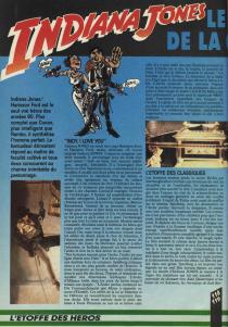 Le premier niveau commence dans la grotte menant à une idole en or que vous avez longtemps convoité. Les graphismes sont très fins et colorés. On reconnait facilement Indy : châpeau, fouet, veste en cuir... rien ne manque. Le héro dispose d'une large palette de mouvements et on pourra utiliser son fouet au dessus des crevasses. Des pygmées essayeront de vous empoisonner. Ce niveau se terminera par la fameuse séquence où une énorme pierre déboule derrière vous et où il vous faudra pendre vos jambes à votre coup. Pour la suite vous traverserez le Nepal à la recherche de Marion, au Caire à la recherche de la cité perdu de Tanis et du puit des lumières dont vous devrez aussi vous en échappez.... jusqu'à l'affrontement avec le sinistre Boloch, archéologue français à la solde des nazis. Un dernier niveau splendide avec Boloch en prêtre et au centre l'arche d'alliance ouvert laissant échapper des fantômes.