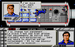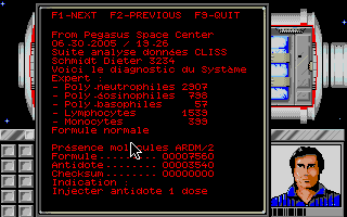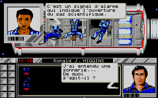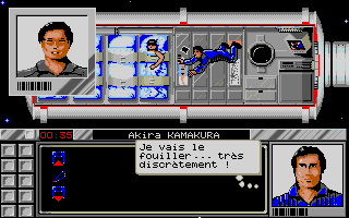 Tout commence par l'opération d'arrimage de la navette spatiale à la station PEGASUS, manoeuvre délicate mais qui peut se faire manuellement sans trop de difficulté et sans avoir recours au mode automatique qui vous fera d'ailleurs perdre une heure sur votre temps d'enquête et aura une incidence directe sur celle-ci, arriver plus tôt à la station vous permettra de sauver un membre de l'équipage. A l'ouverture du sas, vous êtes accueilli par le commandant de bord, Philippe AMIOT, seul à avoir été informé des vraies raisons de votre venu, officiellement pour raisons administrative, discrétion recommandée.