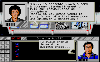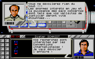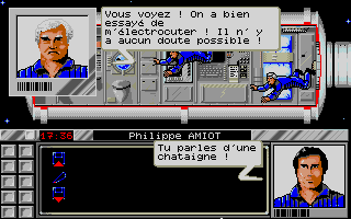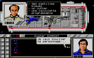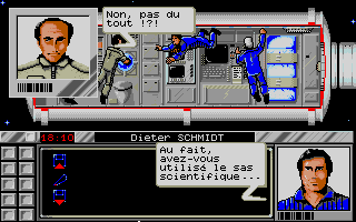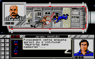 Pour "Meurtres dans l'espace" le changement était minime puisque nous avions remplacé le déplacement d'un curseur sur un plan par celui du personnage dans le décor. Cela correspondait à une évolution des possibilités graphiques mais le fonctionnement général du jeu restait identique dans le principe... avec les "mini jeux " intégrés dans l'intrigue principale et la présence d'indices. La fabrication était d'ailleurs un cauchemar pour le responsable d'Infogrames qui n'avait pas l'habitude de ces boites remplies à ras-bord (et même plus... elle restait un peu bombée tant elle était pleine) à côté d'autres packagings qui contenaient beaucoup de vide !