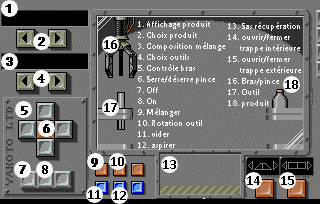 La station n'est pas très grande car elle n'est composée que de 8 modules organisés autour d'un module central. Chaque module est accessible via un sas ou grâce à un pavé de raccourcis sur la gauche de l'écran (ou le pavé numérique du clavier). Vous explorerez successivement le centre de commande, les 2 modules d'habitations, les 2 labos, le module d'activité extra-véhiculaire (EVA), le module de stockage et la navette sans compter vos sorties spatiales.