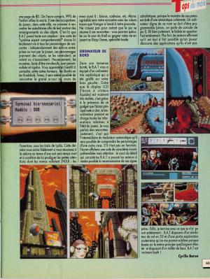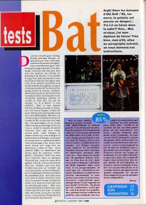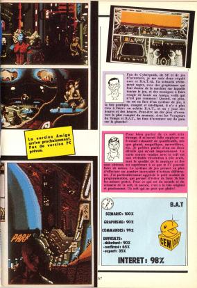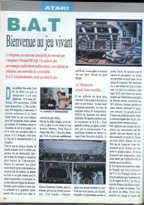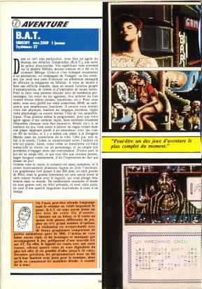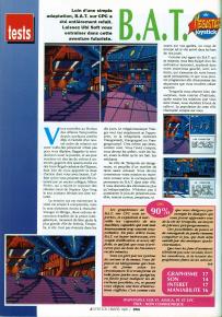 Et B.A.T ne déroge pas à la règle, car déjà en octobre 1988 on pouvait contempler les premières images de ce chef d'oeuvre créé par une toute jeune équipe Computer's Dream composée essentiellement de Philippe Derambure, Olivier Cordoleani (graphiste) et Hervé Lange (programmeur), ces 2 derniers ayant déjà travaillé ensemble sur Fer & Flamme sur Amstrad pour Ubi Soft, et une version Atari ST qui ne vit malheureusement jamais le jour justement car ils réfléchissaient déjà à ce qui devriendra le futur jeu B.A.T. Leur idée était de développer un jeu de rôle-aventure dans un univers futuriste complet et non linéaire de style cyberpunk. Simple à dire mais ce fut une autre paire de manche pour le réaliser, il a fallu tout d'abord se pencher sur le scénario et mettre en place toute l' histoire découlant jusqu'à la menace de Vrangor. Un scénario très bien ficelé, inspiré des romans dits d' anticipation comme celui de Philip K. Dick "Do Androids Dream of Electric Sheep ?" qui a donné le film Blade Runner. On y retrouve une certaine moralité humaine, la recherche du mal (incarné ici par Vrangor) et une certaine dégénérescence de la société (La violence de Terrapolis, la ville est plongé dans une pénombre constante). D'ailleurs le scénario est écrit comme un vrai préambule de roman et pour accentuer ce réalisme, un extrait des "Chronique Terriennes" vous dévoile comment l' exploitation humaine, le libéralisme économique et l' ingérence scientifique (la génétique...) ont conduit à la perte de tout pouvoir du gouvernement face aux Trusts industriels; Aussi par crainte d' une crise planétaire, il fut décider de créer des quotas et des lois de contrôles de ces Trusts, qui finirent par quitter le sol terrestre vers des horizons plus "libéraux" comme Selenia planète du système B-15, on se croierai presque un sujet d'actualité. Vous trouverez même un glossaire du monde de B.A.T, une mini-BD, des croquis sur le style vestimentaire du futur et un fac sur un extrait de journal sur l'explication sur la théorie du pont Einstein-Roben ou plus communément "le voyage inter-stellaire".