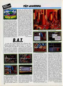 B.A.T demeure encore de nos jours un jeu unique par son ambiance, son scénario et réussi le pari fou de mélanger les genres sans toutefois égaler les meilleurs jeux qu'il essaye de réunir. On pourra lui reprocher une prise en main trop longue et grande difficulté dans les souterrains de Selenia, la durée de vie n'en est que plus élevé et on a en pour son argent. Pour fini B.A.T a reçu maintes récompense et eut un énorme succès, qui engendra en 1992 une suite appelée B.A.T II - The Koshan Conpiracy toujours avec la même équipe. Un an plus tard, une superbe version PC CD-Rom vit le jour avec à la clé des vidéos, des musiques qualités CD et des graphismes en 256 couleurs rien que ca :-).