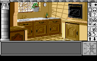 L'écran est de taille plus importante car le texte ne s'affiche plus dans un cadre noir en bas mais dans la partie servant à l'inventaire. Les images des icônes symbolisent mieux l'action et certaines ont été ajoutées, vous pouvez consulter l'heure, mettre le jeu en pause.... Ceci fait de la version ST la plus simple à utiliser.