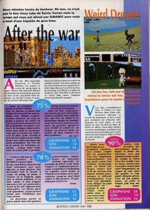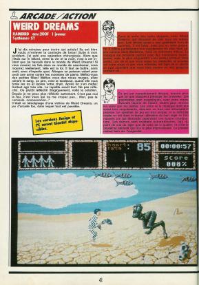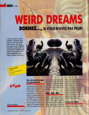 Difficile de rester de marbre devant "Weird Dreams", un jeu réellement étrange, dérangeant mais aussi innovant par le thème abordé. Malheureusement il confirme aussi l'adage que ce qui est beau, est ... beau. Le jeu est en effet entâché d'une difficulté extrême et affublé d'une maniabilité catastrophique, si bien que peu de personne se sont réellement accrochés au jeu. Des graphismes haut en couleurs, très détaillés au détriment du reste. Mais ce jeu est toujours aussi surprenant, inclassable je dirai même par son thème qui ne fut pas repris d'ailleur dans aucun jeu.